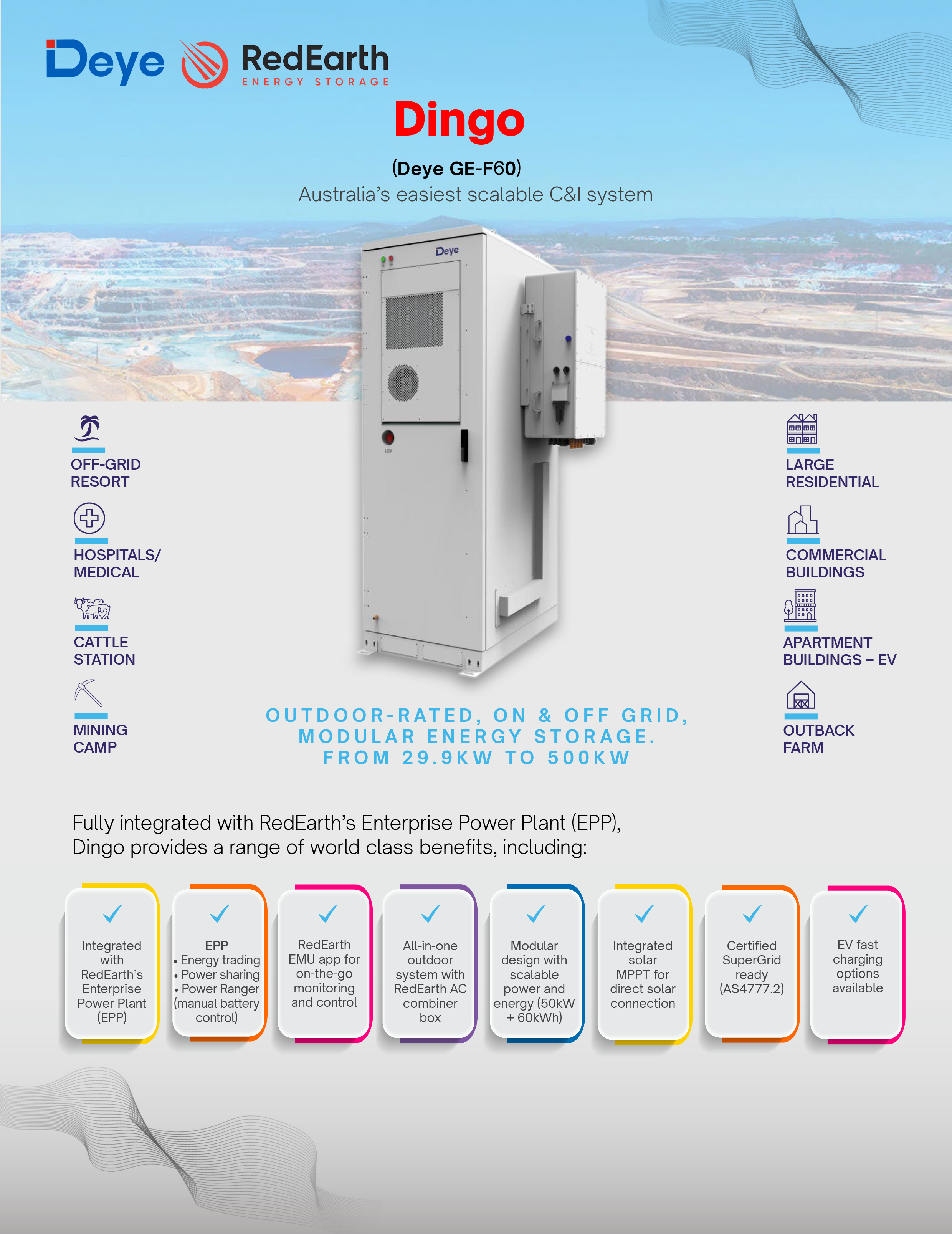 "Deye è lieta di lavorare con uno sviluppatore e un integratore di sistemi di batterie con sede australiano. Raggiungere un'integrazione di successo tra l'inverter ibrido avanzato di Deye e la piattaforma software PPP di Redearth e una vasta gamma di prodotti migliora le opzioni di stoccaggio di energia disponibili per gli installatori e i clienti" Deye Australia Country Manager, George Liu ha affermato.