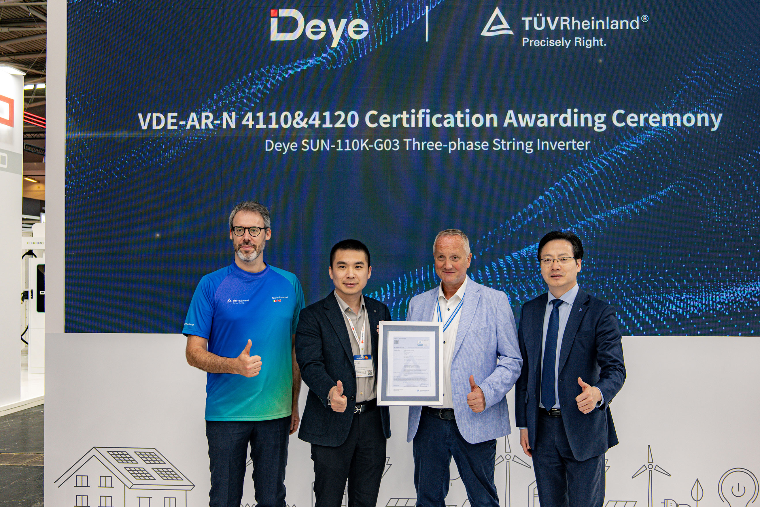 Il 7 maggio, un test internazionale di test, ispezione e certificazione di terze parti, Tüv Rheinland, ha assegnato l'inverter a tre fasi da 110kW inverno VDE-AR-N 4110 e 4120 Certificazioni, convalidandone conpermità con rigoroso Standard di collegamento della griglia di media tensione e ad alta tensione tedesca. L'impegno di Deye per la sicurezza e l'affidabilità è stato formalmente riconosciuto Ancora. Questo inverter è ottimizzato per i tetti commerciali medi-grandi e i sistemi fotovoltaici solari montati.
